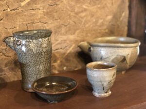 萩焼は、ざっくりとした風合いで、柔らかな色が特徴です。